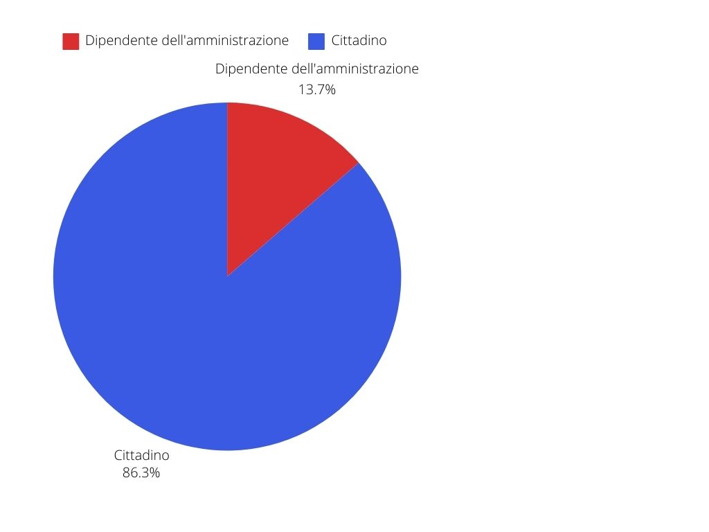 Successivamente si voleva indagare anche se i compilatori fossero Dipendenti dell’Amministrazione o Cittadini interessati a dare la loro vicinanza alla manifestazione. Hanno risposto 512 dipendenti (13,7%) e 3238 cittadini (86,3%). Rispetto ai dipendenti del comparto totali dell’amministrazione (628) la percentuale di adesione dei dipendenti alla Manifestazione di Sciopero 2.0 è stata dell’81,52%.
